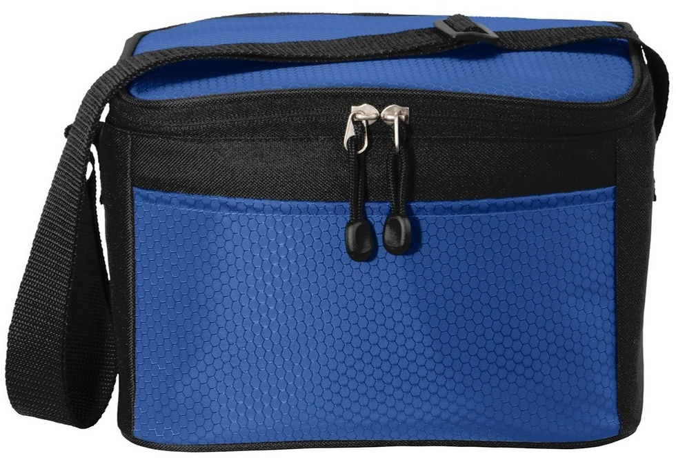 "This cooler easily holds six cans as well as an ice pack and other must-haves. 420 denier honeycomb polyester 600 denier polyester canvas Adjustable web carrying strap Heat-sealed water-resistant lining"